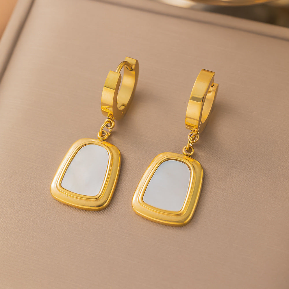 22 [AG325] Trapezoidal white shell, earrings, gold