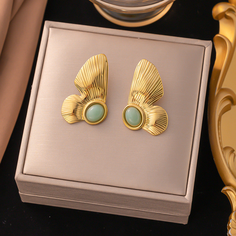 34 [AG165] Greenstone wings, earrings, gold.