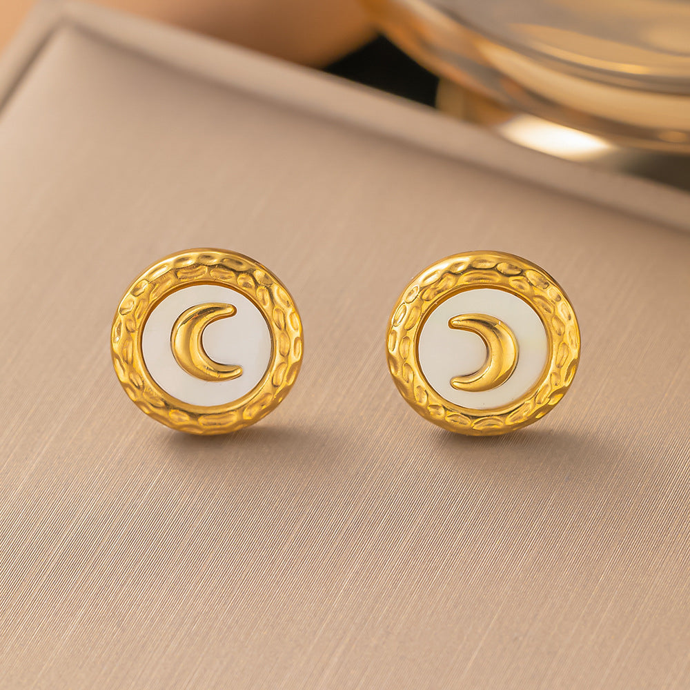 19 [AG69] White shell moon, earrings, gold