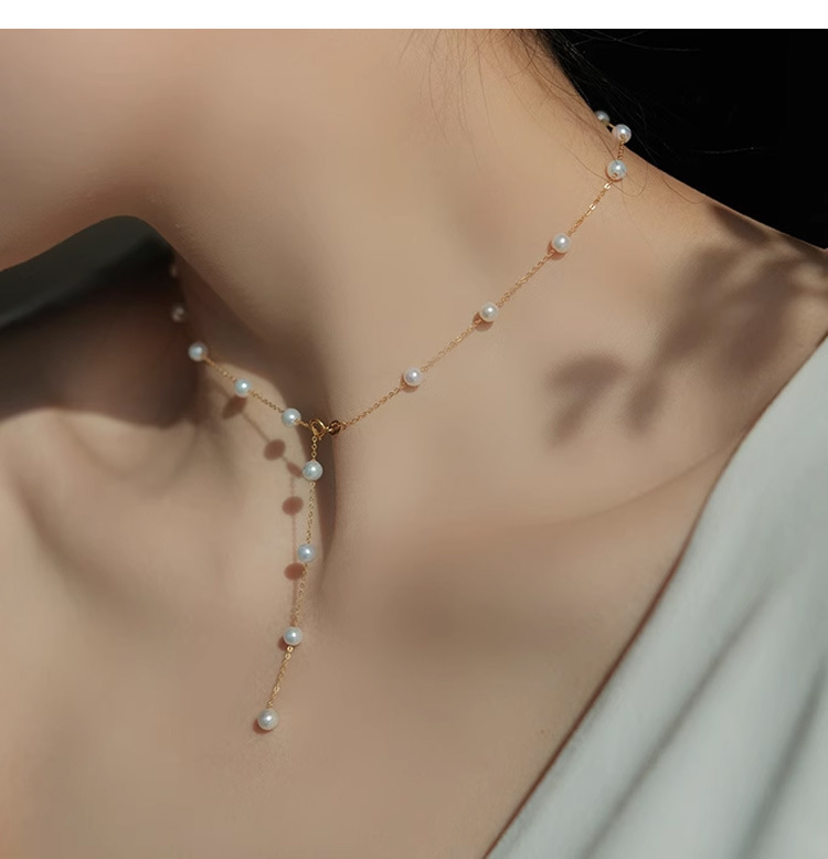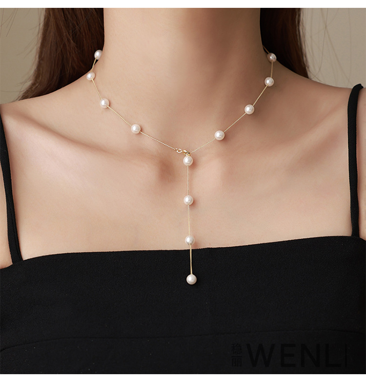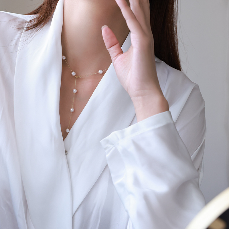 A multi-wearing Y-shaped fringed pearl necklace women's temperament neck chain design sense collarbone chain fashion versatile jewelry