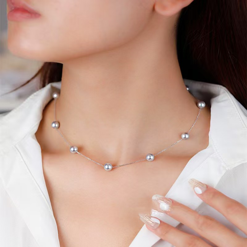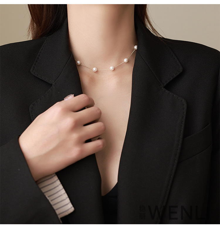 925 Whole Body Silver Pearl Necklace French Simple Versatile Niche Clavicle Chain Light Luxury High-end Jewelry Women's Wholesale