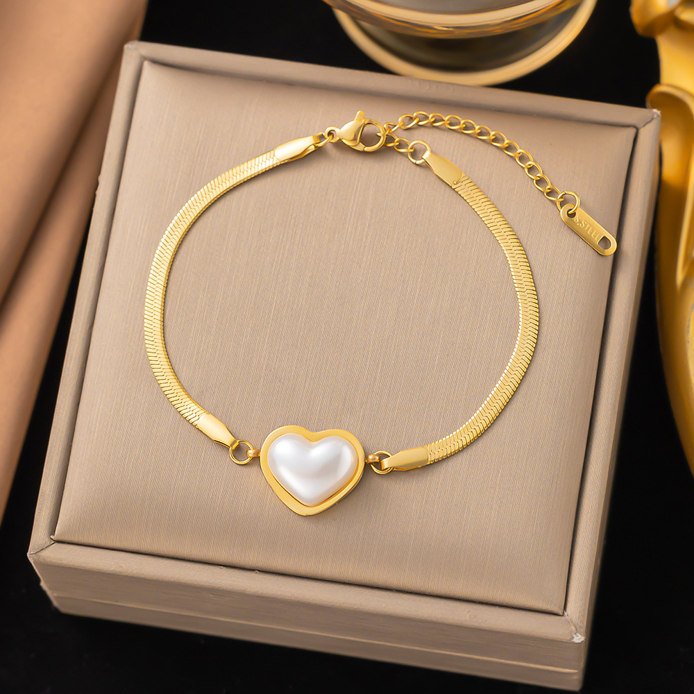 42 [AE2184] White Diamond Love, Bracelet, Gold