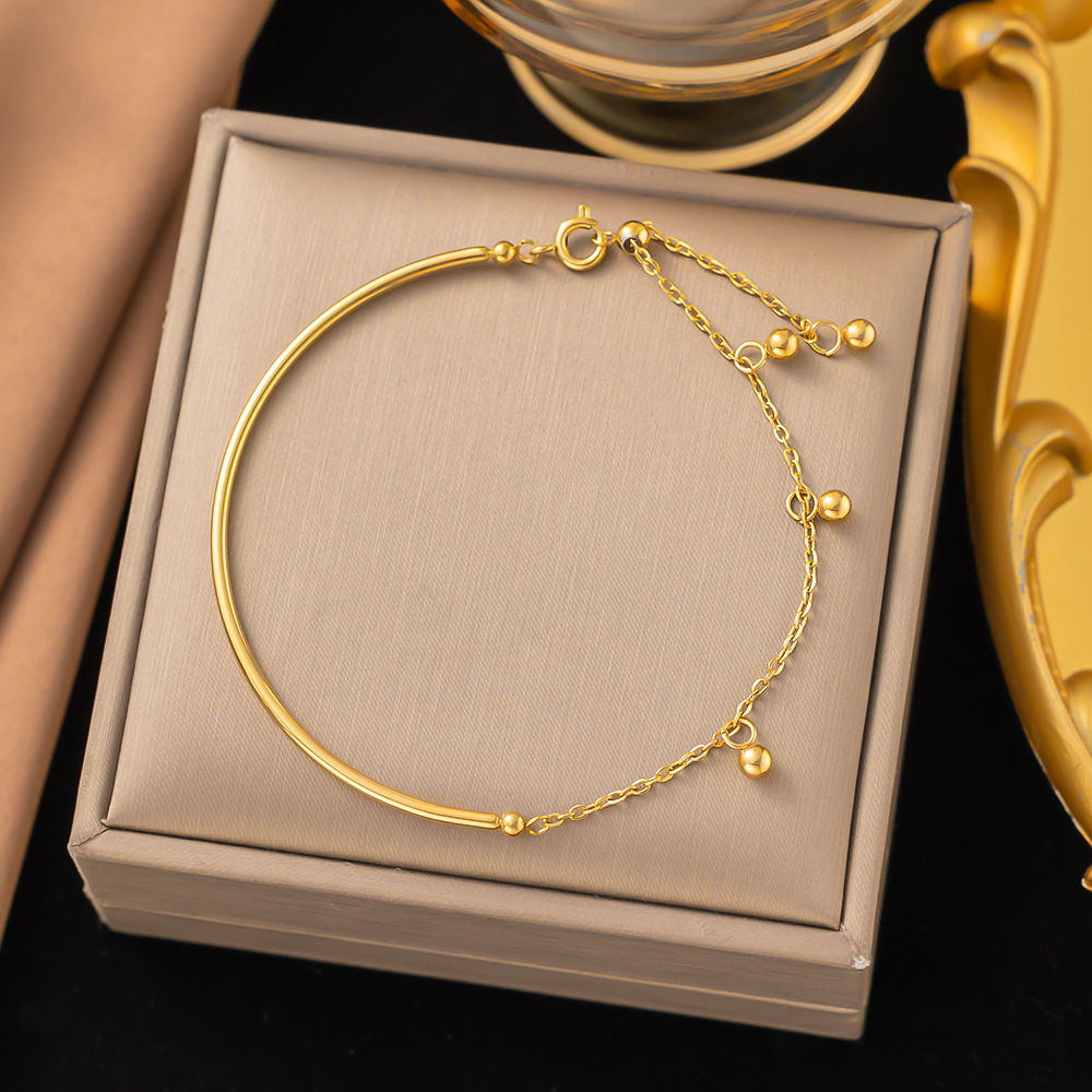 25 [AE153] Bead Flowers, Bracelet, Gold