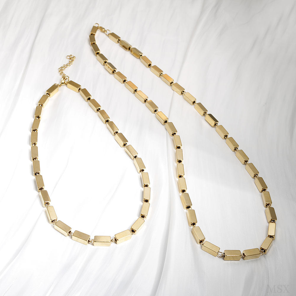 Color: gold cylindrical bracelet for women (16 5cm), gold cylindrical necklace for men (60cm), gold cylindrical necklace for women (40 5cm), gold rectangular bracelet for women (16 5cm), gold rectangle necklace for women (405cm), gold rectangle necklace for men (60cm)