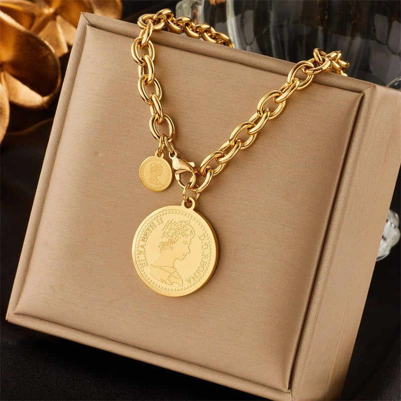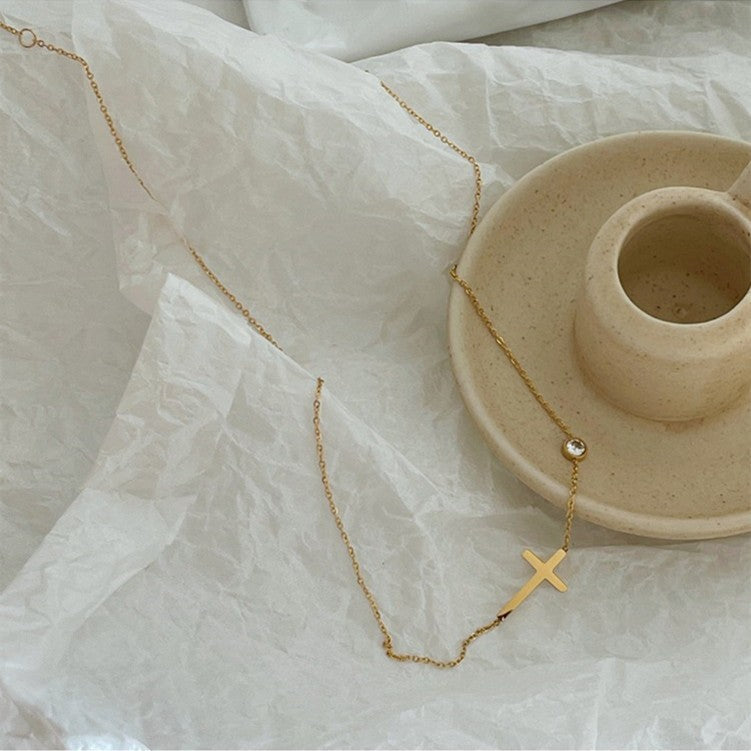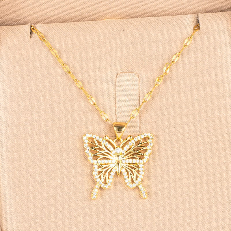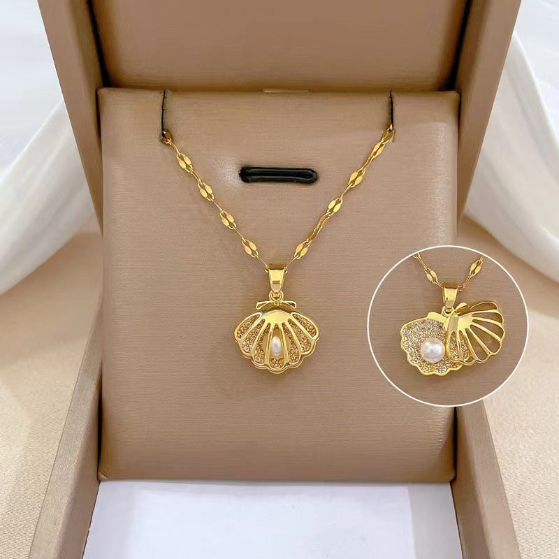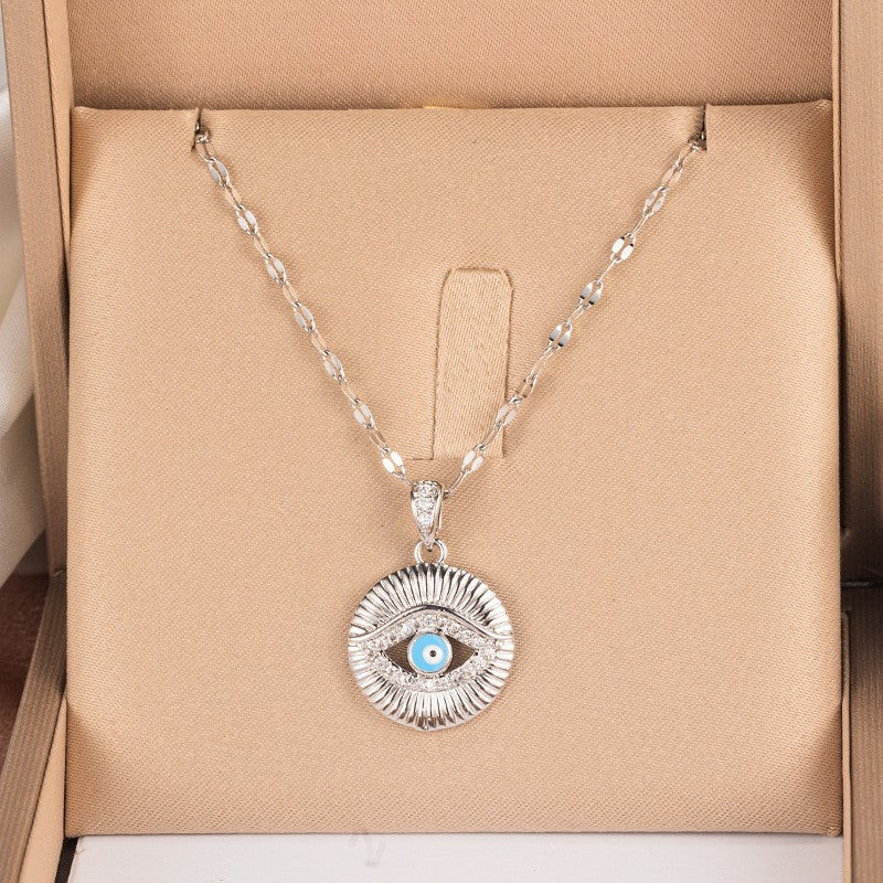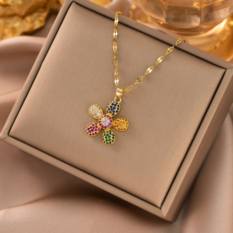 Titanium Steel Rhinestones Plating Inlay Pendant Necklace