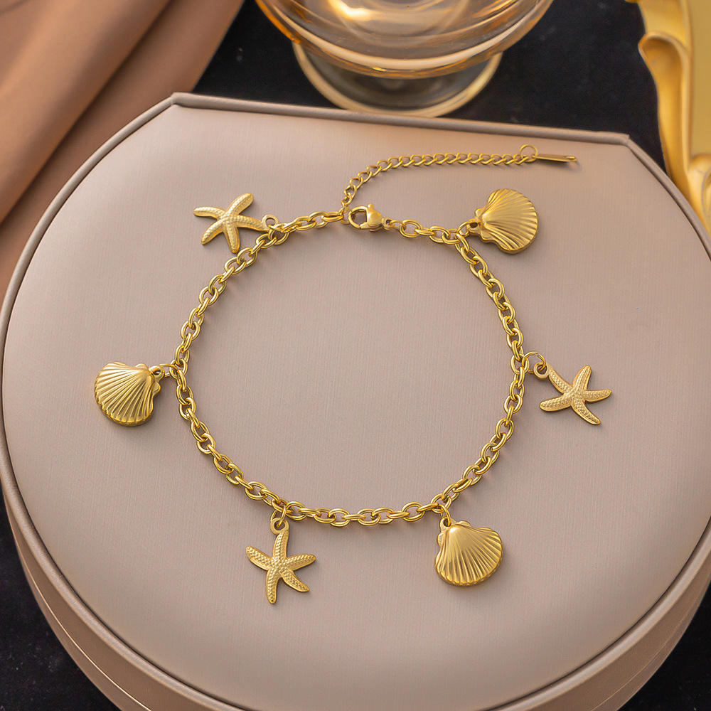 27 [AB5002] Double-layer white shell butterfly, anklet, gold