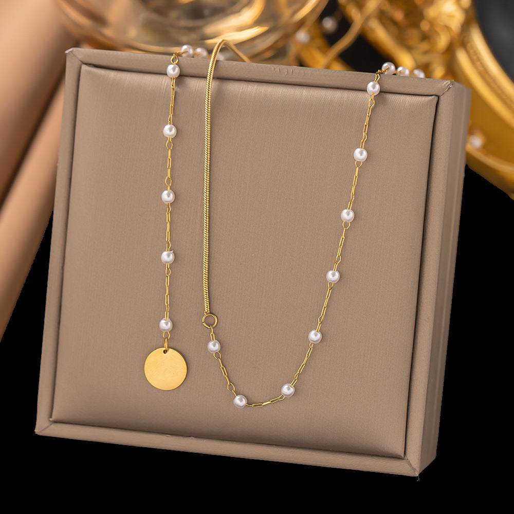 17 [AH371] Double-layer water drop square strip, necklace, gold.